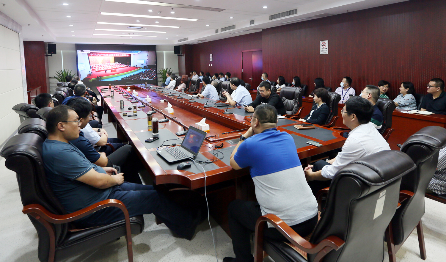 集團(tuán)公司領(lǐng)導(dǎo)班子成員在總部會(huì)議室收看了開(kāi)幕盛況。