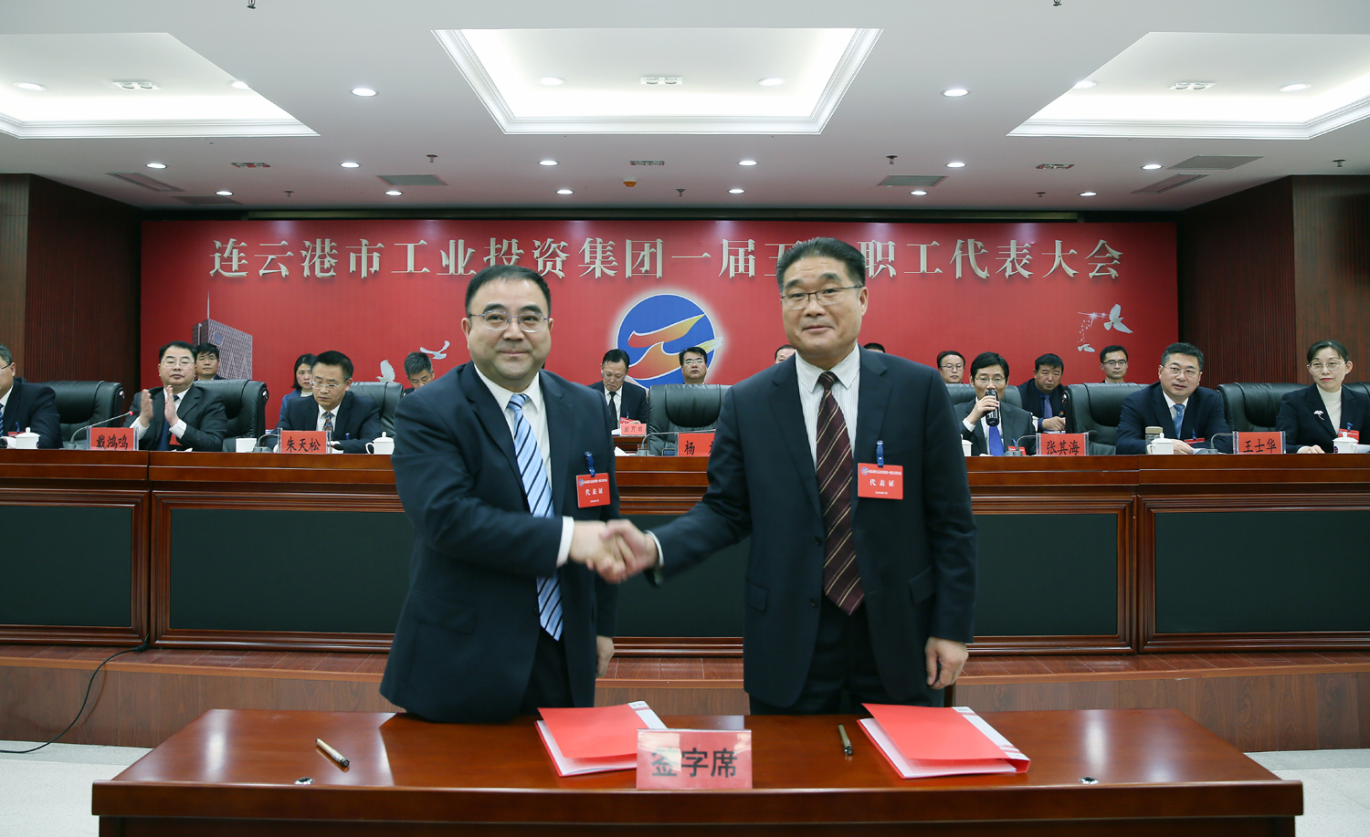 藍圖繪就,正當揚帆破浪;重任在肩,更須策馬揚鞭。1月14日上午9時,在雄壯的國歌聲中,集團公司一屆五次職工代表大會在總部隆重召開,來自各條戰線的職工代表肩負全體工投人的重托,齊聚一堂,共商企業發展大計。黨委書記、董事長楊龍作講話,總經理胡建明作工作報告。黨委副書記戴鴻鳴、工會主席劉承志分別主持大會。集團公司領導楊國新、張其海、朱天松、王士華、汪群、匡友本、陳如軍在主席臺前排就座。