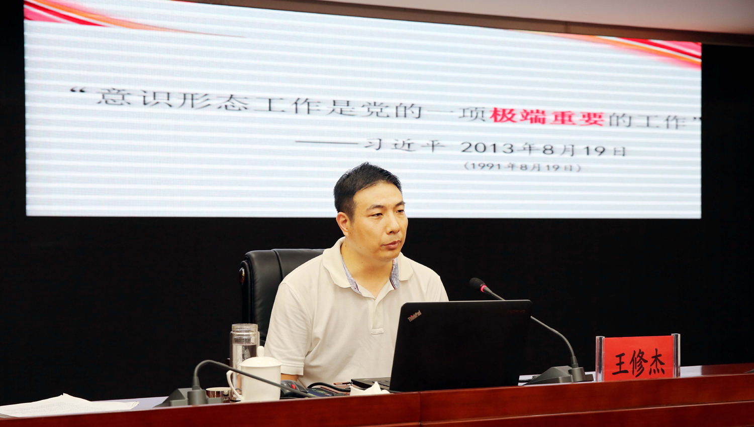 王修杰以“牢牢掌握意識形態(tài)工作的領(lǐng)導(dǎo)權(quán)”為題,結(jié)合國際國內(nèi)形勢和我市實際,圍繞充分認識意識形態(tài)工作的極端重要性、深刻把握當前意識形態(tài)領(lǐng)域復(fù)雜形勢、全面落實黨委意識形態(tài)工作責任制等方面內(nèi)容,深入淺出的剖析解讀了意識形態(tài)工作的基本內(nèi)涵、重大意義,報告主題鮮明、內(nèi)涵深刻、闡述透徹、聯(lián)系實際、條理清晰,既有理論思考、又有經(jīng)驗總結(jié),為與會人員深刻理解和把握新時代國企意識形態(tài)工作的新使命、新要求、新任務(wù)、新方法具有很強的現(xiàn)實指導(dǎo)意義。