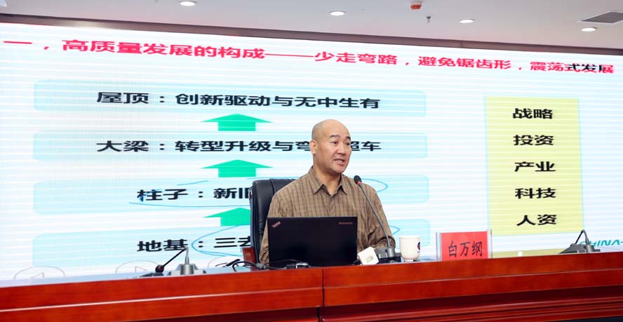 本次培訓班邀請上海華彩咨詢集團總裁白萬綱博士、副總裁江斐圍繞“高質量發展導向下的企業改革與企業管理”、“新常態背景下的集團型企業的資本運作”作了專題輔導培訓。兩位專家學者結合工投集團實際,理論與實踐相結合,運用大量翔實的數據和實例,祥細闡述和解讀了在高質量和新常態的發展大勢下,國有企業跨越發展與改革管理、資本運作三者之間的緊密聯系,主題鮮明、內涵豐富,具有很強的針對性、前瞻性和指導性。