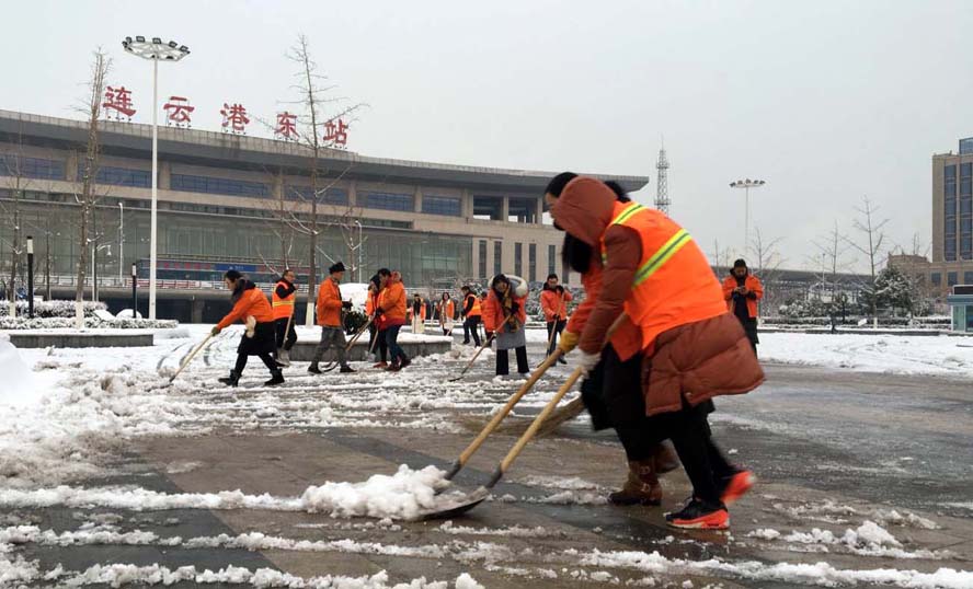 1月4日,久違的一場大雪飄然而至,將美麗的港城裝點的銀裝素裹,分外妖嬈,但也給交通和出行帶來諸多不便。對此,集團公司積極履行社會責任,連夜部署安排,發動全公司各單位積極行動,組織廣大干部職工參與公共區域冰雪清除行動,清積雪、暢通道、獻愛心,為打造“干凈、方便、順暢”連云港作出積極貢獻。
