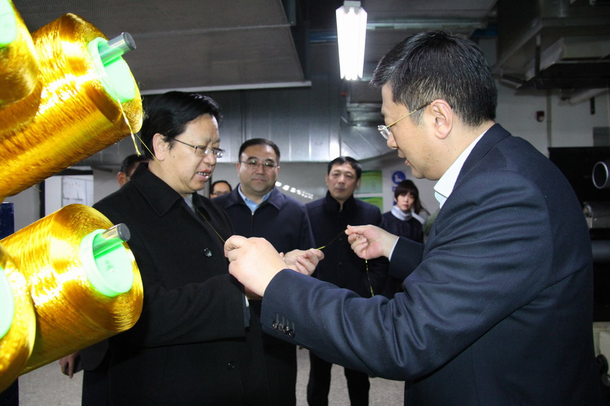 參觀了奧神新材料公司展廳,現場觀摩聚酰亞胺高性能纖維生產車間產品生產過程,并聽取該公司發展狀況和產品相關情況介紹。