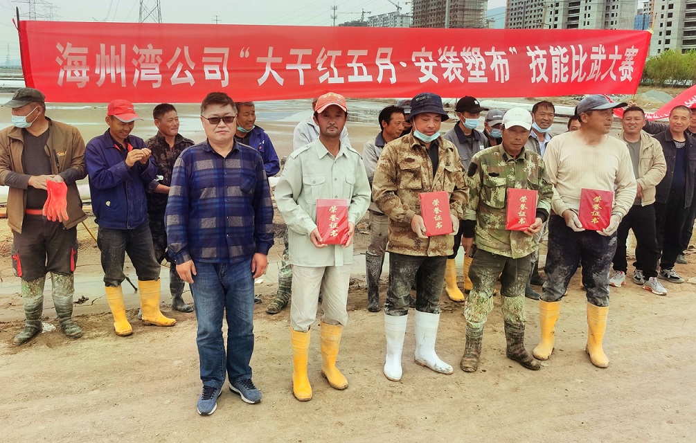 本次技能比武共有24名一線職工報(bào)名參加,分為4組,每組6人,以小組為單位,同規(guī)模、同長度、同條件格堰,在規(guī)定時(shí)間內(nèi)完成塑布安裝。
