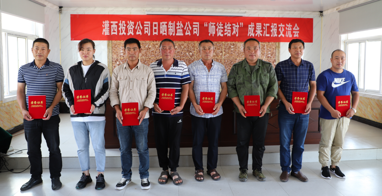 “感謝公司提供這樣一個師徒結對的平臺,師傅葛高建在班組管理、‘三雨’操作、除硫制鹵、安全生產等方面都毫不保留地給了我許多的指導和幫助,使我在各方面都有了很大進步”,日曬制鹽公司14班的青年班長王新華在公司2021年度“師徒結對”成果匯報交流會上說道。