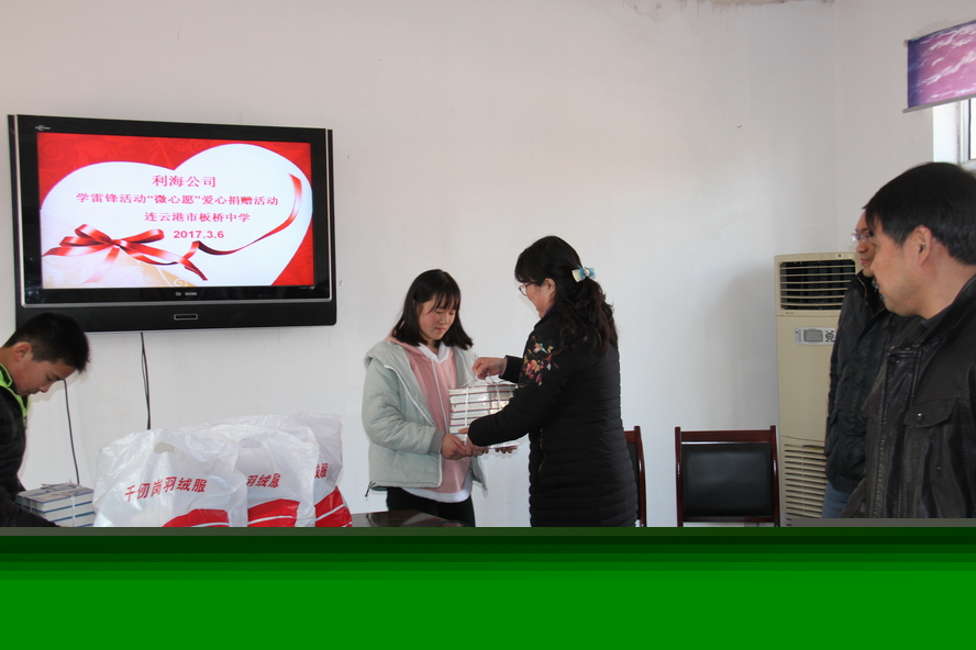 3月6日下午,利海公司按連云區(qū)“學雷鋒志愿服務月”活動內(nèi)容,主動聯(lián)系板橋中學,了解到有部分貧困學生的實際困難后,積極與學校開展圓夢“微心愿”活動,為他們送去棉衣與書籍等學生們心中的“微心愿”。