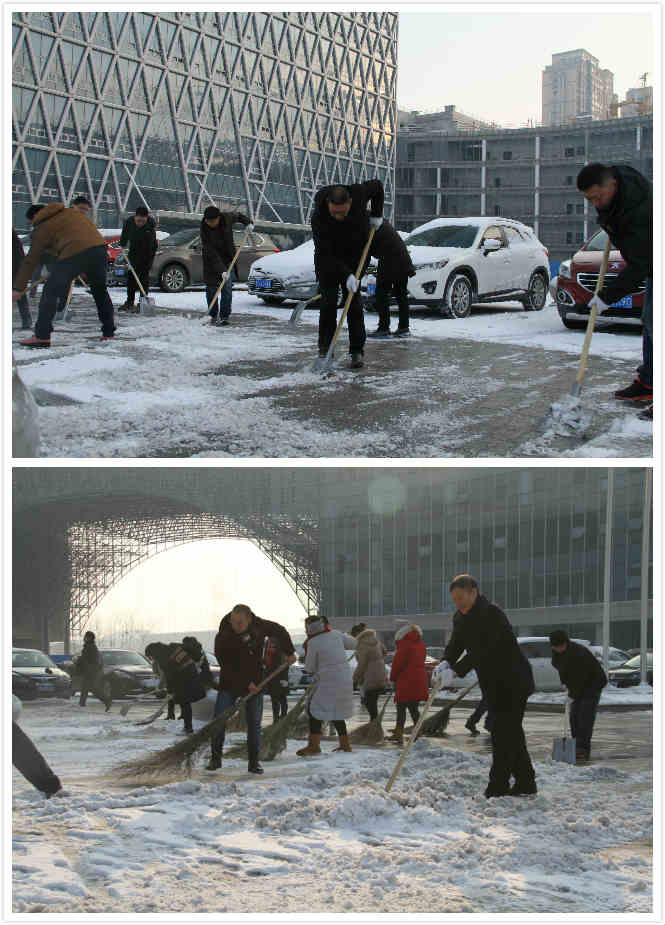 1月5日早晨,公司組織機關全體工作人員對門前廣場和附近道路的積雪進行了徹底的清掃,確保來公司辦事群眾不滑倒、摔傷,確保群眾的人身安全。