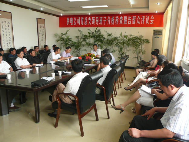 6月23日,我公司召開了黨總支領導班子分析檢查報告群眾評議會,機關中層管理人員、各供電所領導班子成員及部分職工代表參加了評議。