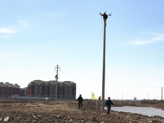 3月14日,臺南供電所職工正在加緊對張圩小區10kv供電線路進行導線架設。
