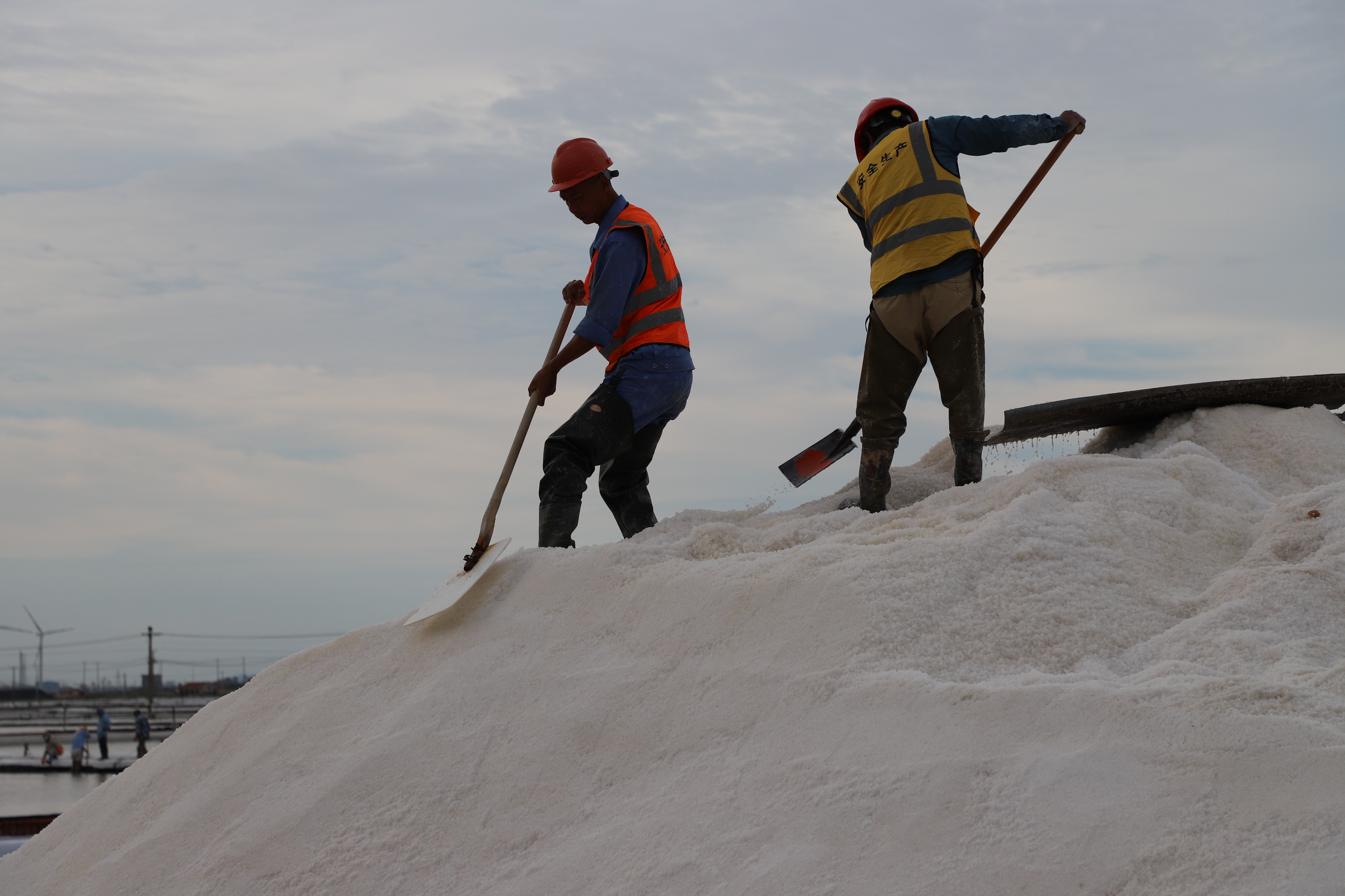 原鹽生產(chǎn)不松勁。每年的國(guó)慶假期總是與“秋扒”不期而遇。由于受連續(xù)的陰雨天氣影響,今年的秋扒工作一度延后。9月29日--9月30日,凌晨5點(diǎn)鐘,日曬鹽田的鹽圩小路像往常一樣成了一道最美的風(fēng)景線,鹽工們?nèi)蔽溲b奔赴各自工作點(diǎn)位進(jìn)行收拉塑布、排淡等工作。為了搶時(shí)間,抓進(jìn)度,鹽工們緊鑼密鼓地忙碌起來(lái),籌備扒鹽工作,天氣剛轉(zhuǎn)好,只見(jiàn)有的在整理塑布,有的破碴,10月2日,10臺(tái)扒鹽機(jī)組全部運(yùn)轉(zhuǎn)起來(lái),潔白的鹽廩逐漸擴(kuò)大,節(jié)日期間將扒鹽30000余噸。