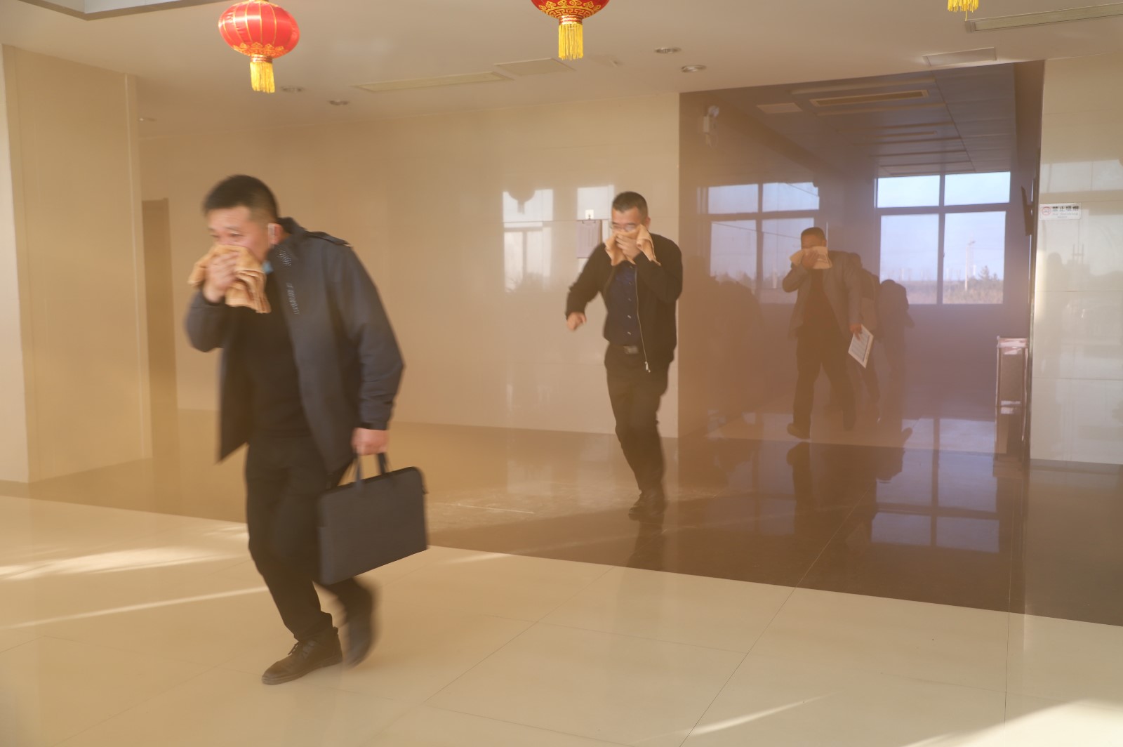 此次實(shí)戰(zhàn)演練的“突發(fā)事件”地點(diǎn)設(shè)在機(jī)關(guān)大樓,所有參訓(xùn)人員按照既定的消防應(yīng)急預(yù)案進(jìn)行了一次消防安全模擬演練。隨著“消防警報(bào)聲”響起,正在大樓內(nèi)工作的員工在濃煙中用濕巾捂嘴、彎腰、靠墻從樓梯道口迅速有序地疏散、撤離,在假定火災(zāi)發(fā)生條件下進(jìn)行逃生自救實(shí)戰(zhàn)演練。救援組、疏散組、后勤組各組成員各負(fù)其職,配合有序,隨后,大家在樓前廣場(chǎng)上進(jìn)行了滅火器實(shí)戰(zhàn)操作訓(xùn)練。