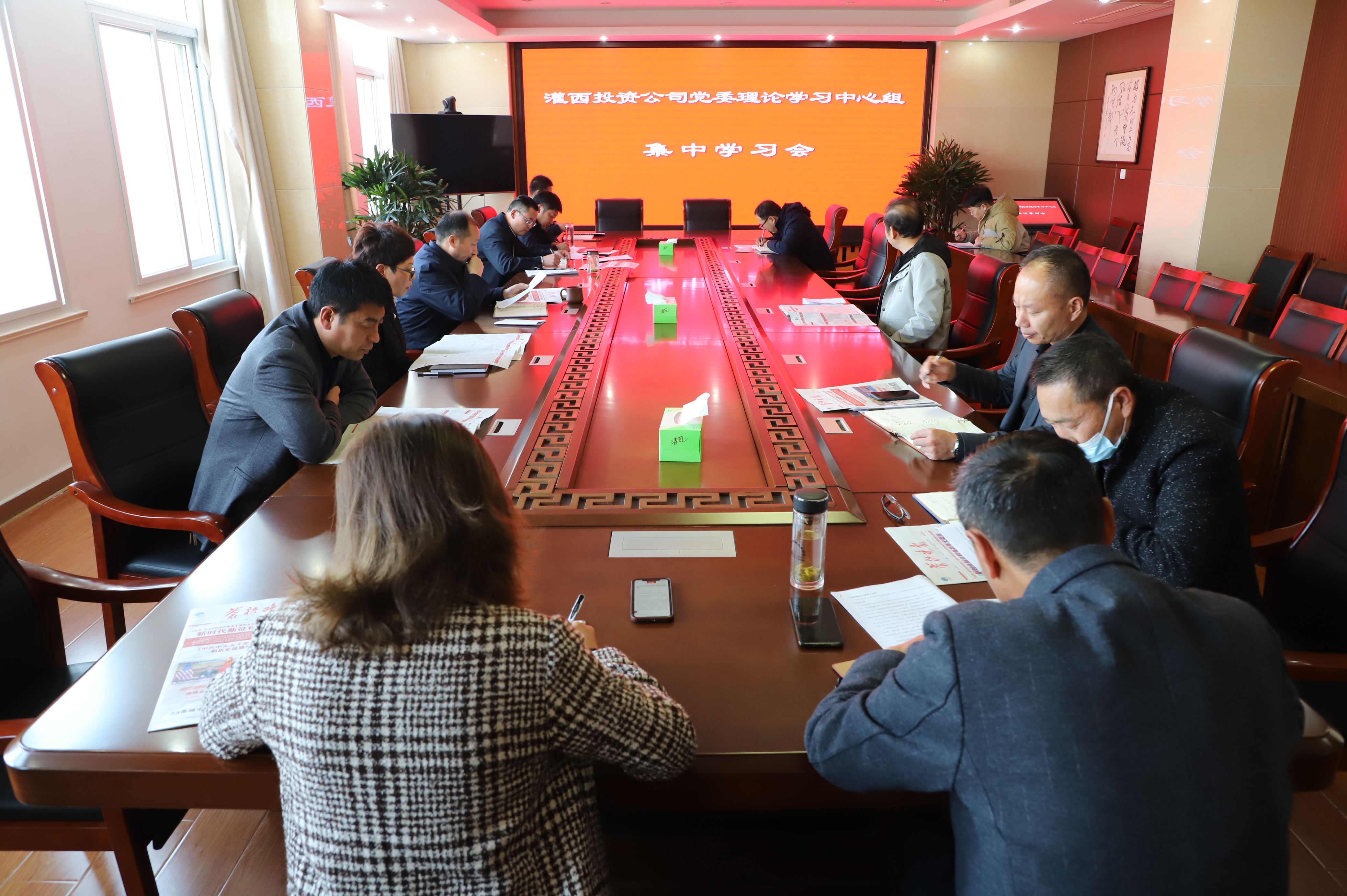 11月19日下午,灌西投資公司黨委召開十一月份中心組學習會,深入學習貫徹黨的十九屆六中全會精神。公司領導班子全體成員、黨群部門負責人等參加學習。