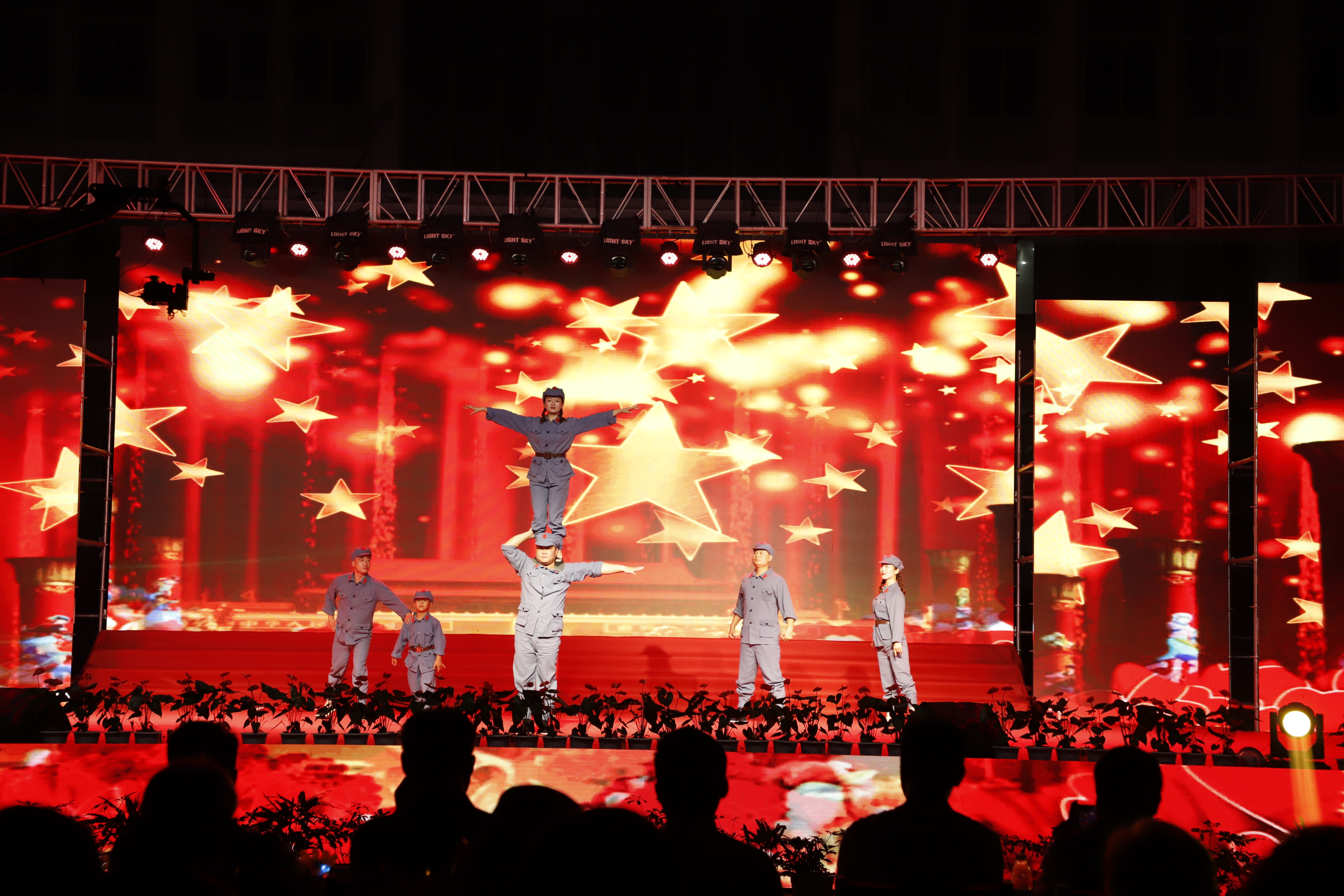 百年征程路漫漫,燦爛輝煌激人心,是中國共產黨指給了人民解放的道路,領導中國走向光明,是中國共產黨引領中華民族走向復興之路,奮進新時代、開啟新征程,最后,全場人員同唱《沒有共產黨就沒有新中國》,10面國旗、10面黨旗在揮舞,整個舞臺成為一片紅的海洋,整場晚會圓滿落下帷幕。