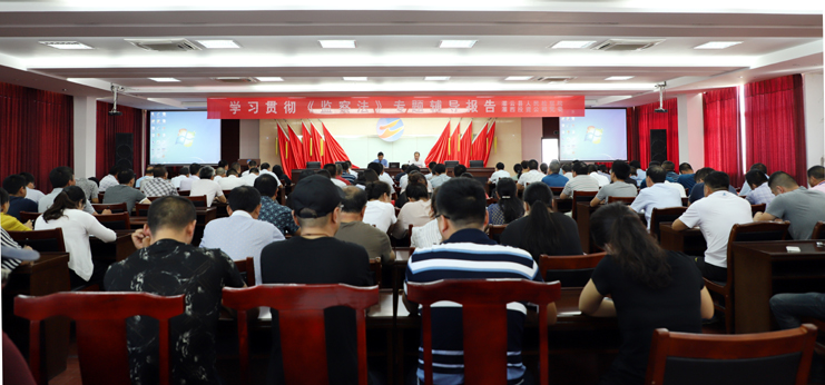 此次集中培訓只是我公司深入學習貫徹監察法的舉措之一,按照公司紀委統一部署,把監察法納入公司干部必修課程及各類黨員培訓內容,通過座談會、報告會等多種形式,深化學習培訓效果,把學習培訓延伸到基層一線。會后全體與會人員集體在“學深學透《監察法》,做遵紀守法國企人”橫幅上簽字承諾。(張明建)