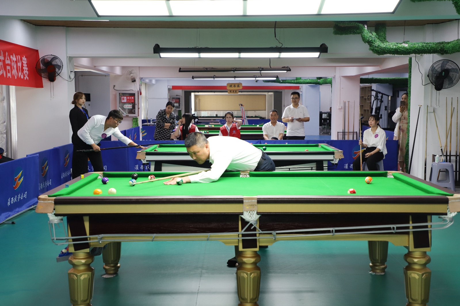 7月12日9時,集團公司第五屆職工健身運動會中式臺球比賽名次爭奪賽正式開賽。經過全天激烈比拼,灌西投資公司代表隊選手耿劉憑借精準的桿法控制、沉穩的賽場心態,在多輪高強度對抗中一路過關斬將,最終力壓群雄,成功斬獲男子組冠軍!同期,灌西代表隊另一選手馬丙江獲得男子組第六名。金橋制鹽公司選手程思潔以出色發揮摘得女子組冠軍,為賽事畫上圓滿句號。