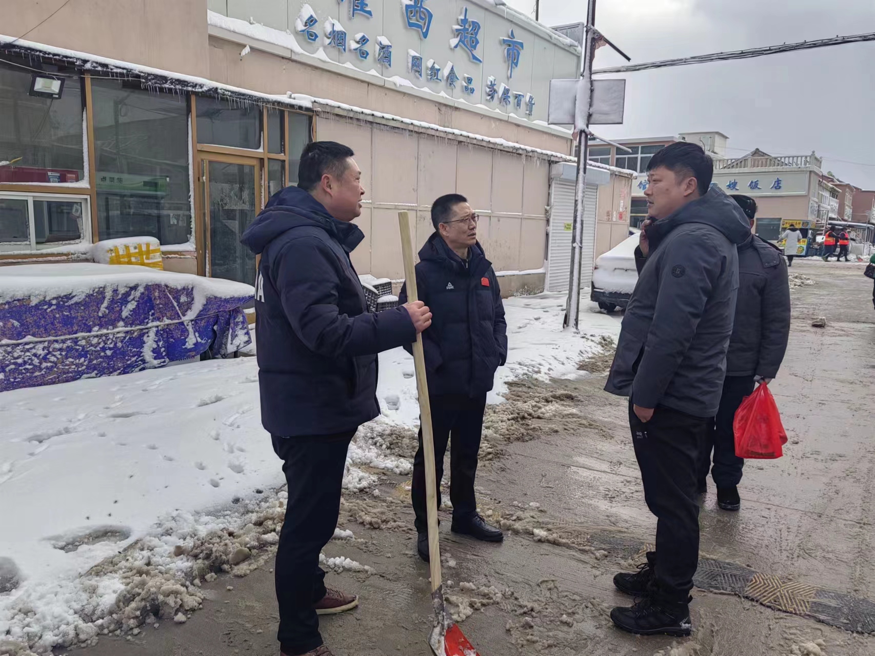 在除雪工作中,南翼公司領導班子合理分配清雪人員,身先士卒,揮舞著鐵锨、掃帚、帶領全體員工開展轄區內積雪清掃工作。大家團結協作、干勁十足,掃的掃、鏟的鏟、干的熱火朝天。同時為保障轄區內居民出行安全,對片區下水道缺失蓋板進行更換。