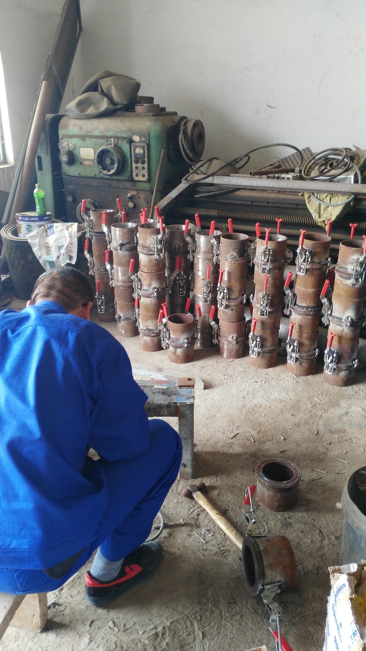 為提高扒鹽管道安裝速度,減輕鹽業(yè)工人勞動負(fù)荷,連日來,機(jī)電服務(wù)公司制作人員認(rèn)真進(jìn)行管道快接頭制作,他們分工負(fù)責(zé),2人專門焊接,4人進(jìn)行管道接頭安裝,預(yù)計(jì)本周五一臺機(jī)組63節(jié)管道,4個彎頭制作完成,下周進(jìn)行實(shí)際試用。(機(jī)電服務(wù)公司)