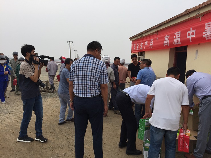 7月18日下午,集團公司總經理胡建明、副總經理張其海一行深入日曬制鹽公司走訪慰問一線職工,為堅守在高溫下一線的員工送去“清涼”和組織的關懷。慰問中,集團總經理胡建明、工會主席李嵐琴為生產一線員工發放了綠豆、白糖、八寶粥等防暑降溫用品并詳細詢問了一線員工的生產生活狀況。對一直堅守在工作一線的員工表示了深深的感謝。談起這次夏日送清涼活動,集團總經理胡建明的話語中無不流露著對一線員工的敬意和親切關懷,活動結束后,總經理胡建明、副總經理張其海在投資公司董事長王德志等人的陪同下參觀了九班的安全班組建設情況,并對新河制鹽的安全班組建設成果予以肯定。(新河制鹽 邱利民)