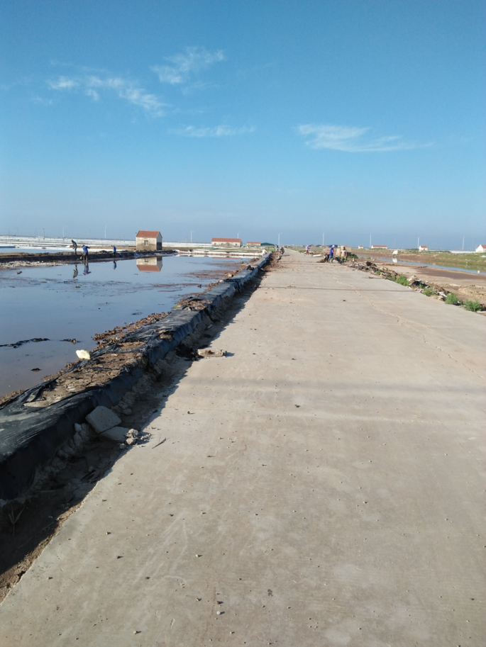 近來,天氣炎熱,陰晴不定,給日曬制鹽新河分公司生產工作帶來不便。新河制鹽職工本著早五晚七的工作時,斗酷暑、避高溫,搶修灘。這不!新河八班提前把大廩基修整工作擺上議事日程。十名男女職工齊聚二期大廩,有運土打埝的、有挖泥培土的、有拖整雜物的、有挖溝整平的、有拉布苫埝,看得出分工明確,各有所為,個個干得心無旁騖,大汗淋漓。