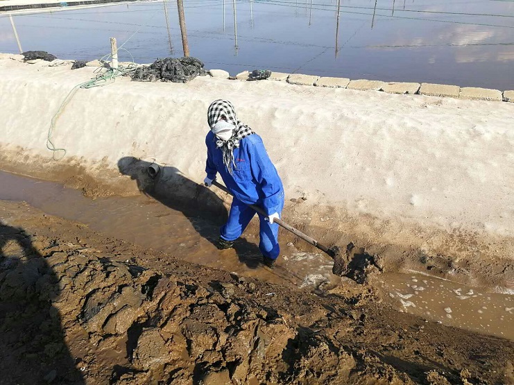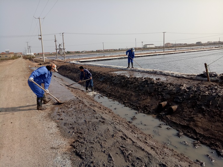 海鹽基地三個班組,每班集中人力從門面溝開始做起,依次咸頭、甜頭。走進灘頭,大家手握鐵锨有挖泥的、踩泥的、澆水的、抹平的,干得熱火朝天。下步將進入和格壓格階段工作。(實業(yè)公司)