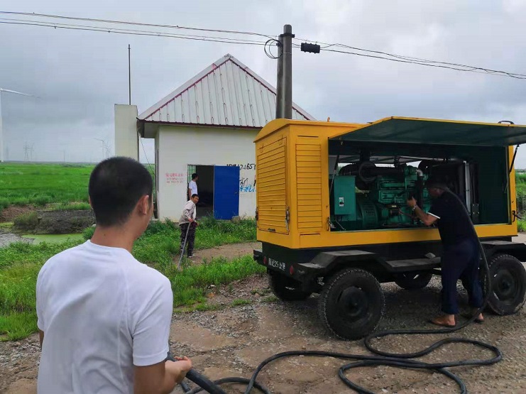 8月10日強臺風“利奇馬”登陸連云港,降水量達到暴雨級別,明威公司立即成立抗?jié)撤姥粗笓]中心,指揮中心由明威公司全體班子成員組成,搶險隊由全體職工組成。險情一:由于降水較集中,稻田無法及時排水,按既定方案打開二灣排水閘、八十四萬排水閘。暫時緩解稻田排水壓力。險情二:大雨持續(xù)大德稻田大面積被淹,河道排水水流不夠,一時無法緩解稻田排水壓力,指揮中心迅速作出決定,啟用路北強排站,搶險隊按預(yù)定方案,有條不紊的安裝發(fā)電機組,水情達到了有效的控制。