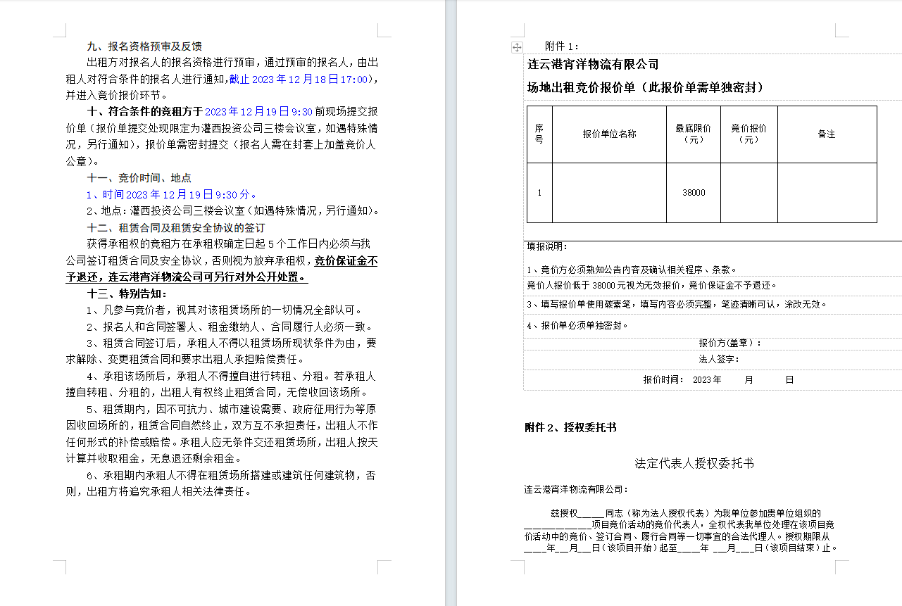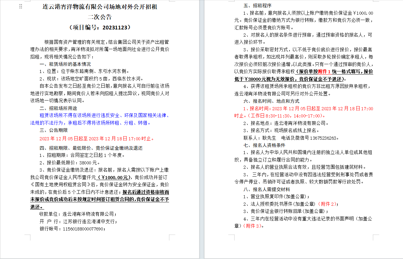 連云港宵洋物流有限公司場(chǎng)地對(duì)外公開(kāi)招租二次公告
