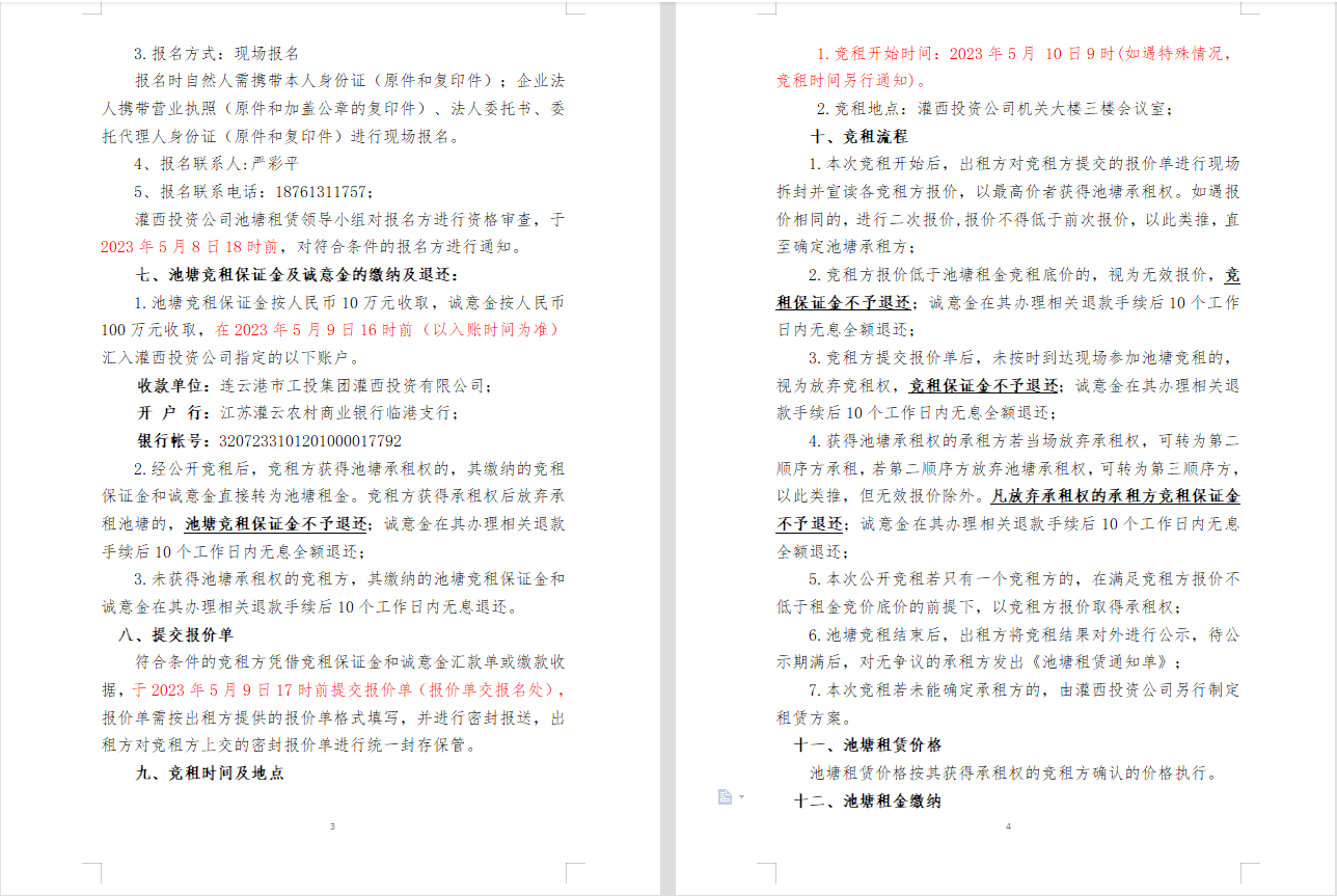 連云港市工投集團灌西投資公司2023年度淡水養殖池塘公開競租公告