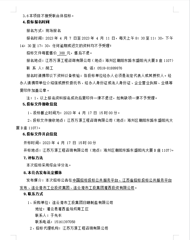 連云港市工投集團日曬制鹽有限公司鹽膜招標公告