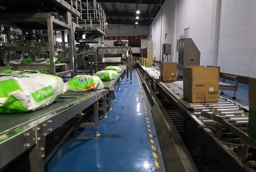 公司配送中心正在裝運小包裝鹽產品