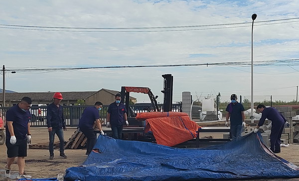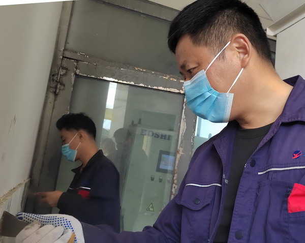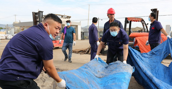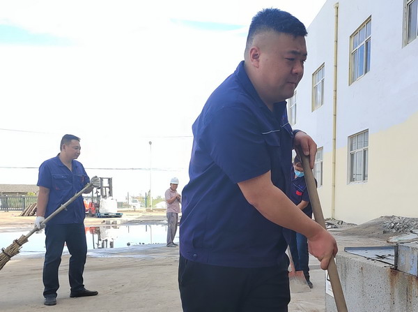 期間,共整理氈蓋塑(帆)布1000余平方、清潔廠區地面近500平方、清潔室內墻面70余平方。(金宣)