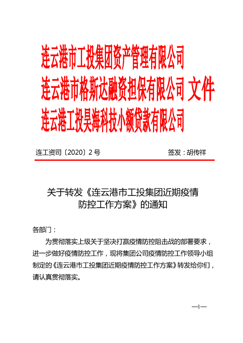 《連云港市工投集團近期疫情防控工作方案》的通知