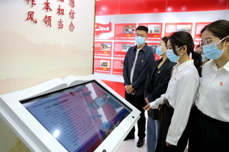 首站,青年干部們來到海州區檢察院,接受警示教育洗禮。在講解員的帶領下,大家先后參觀了融媒體中心、黨員干部廉潔教育基地、廉潔教育互動點播等展廳,回顧了中國共產黨的光輝歷程,并運用“正面典型+反面案列”相結合的方式,通過以案說紀、以案釋法,教育引導青年干部以此為鑒、吸取教訓,自覺抵御各種誘惑,扣好廉潔從業的“第一??圩印?。