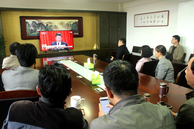 大家早早就集中到各收看點,做好收看準備。報告伊始,大家聚精會神,仔細聆聽報告內(nèi)容,并不時做著記錄。大家一致認為黨的十九大是在全面建成小康社會決勝階段、中國特色社會主義進入新時代的關鍵時期召開的一次十分重要的大會,會議的召開是全黨、全國各族人民政治生活中的一件大事。習近平總書記所作的報告全面總結了黨的十八大以來治國理政的輝煌成就和寶貴經(jīng)驗,展望了新時代中國共產(chǎn)黨的歷史使命、新時代中國特色社會主義思想和基本方略。習近平總書記的報告高瞻遠矚,氣勢恢宏,總攬全局,振奮人心。
