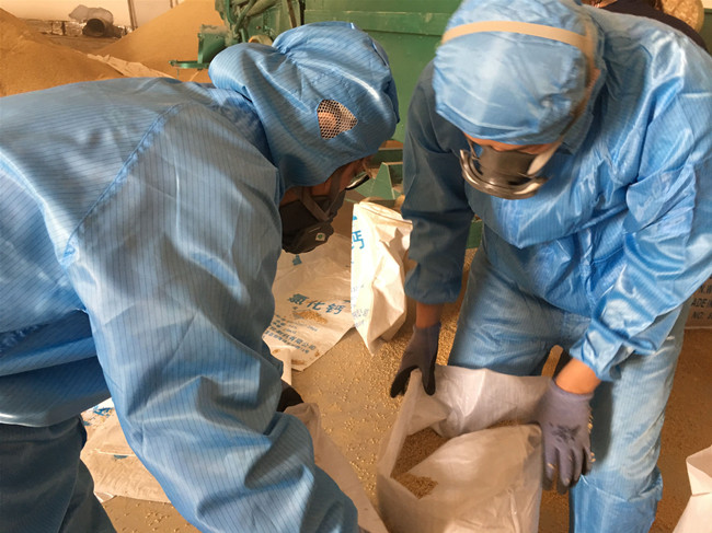 為確保大新農場秧苗育種工作的順利開展,米業營銷中心員工加班加點,篩選9108原種,經過多次除雜、過篩,為給條田工提供優質的稻種。