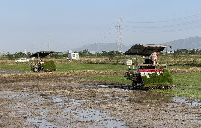 近日,為保障水稻移栽有序進行,在倉儲中心田間地頭,支部黨員職工齊上陣,解決農忙時節勞動力緊缺問題,讓黨旗飄揚在田頭。(王 偉)