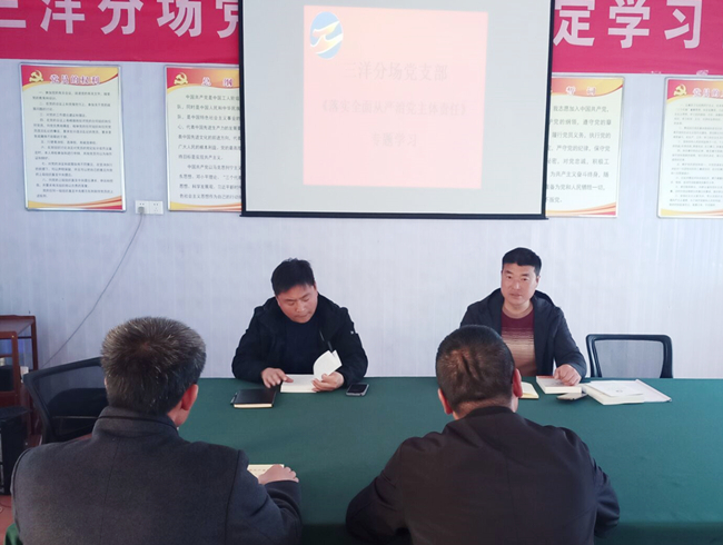 為宣傳貫徹公司黨委黨史學(xué)習(xí)推進(jìn)會精神,4月19日下午,三洋分場黨支部就黨史學(xué)習(xí)教育進(jìn)行動員和部置。要求每一位黨員按時間節(jié)點認(rèn)真推進(jìn)學(xué)習(xí),切實做到學(xué)史明理、學(xué)史增信、學(xué)史崇德、學(xué)史力行,把黨的光榮傳統(tǒng)和優(yōu)良作風(fēng)融入到實際工作中去。
