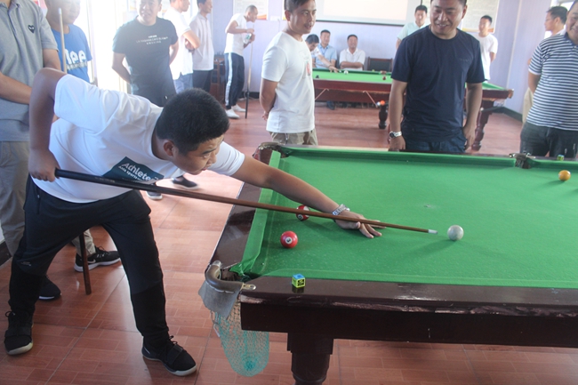 ? ? 臺球初賽采用三局兩勝淘汰賽制,抽簽決定比賽對手和上場順序,第一輪勝出者進入下一場比賽,前四名選手進入決賽。本次共有32名選手報名,參賽隊員雖然都是業(yè)余愛好者,但每名參賽選手態(tài)度非常認(rèn)真,臺球桌前,他們不停地走動尋找最佳擊球點,架桿、出桿、撞球、落袋,過程緊張而激烈,博得觀眾陣陣掌聲。經(jīng)過多輪角逐,服務(wù)中心張建軍獲本次比賽的冠軍,大新農(nóng)場徐振濤、候玉剛及服務(wù)中心張根林獲得二等獎。
