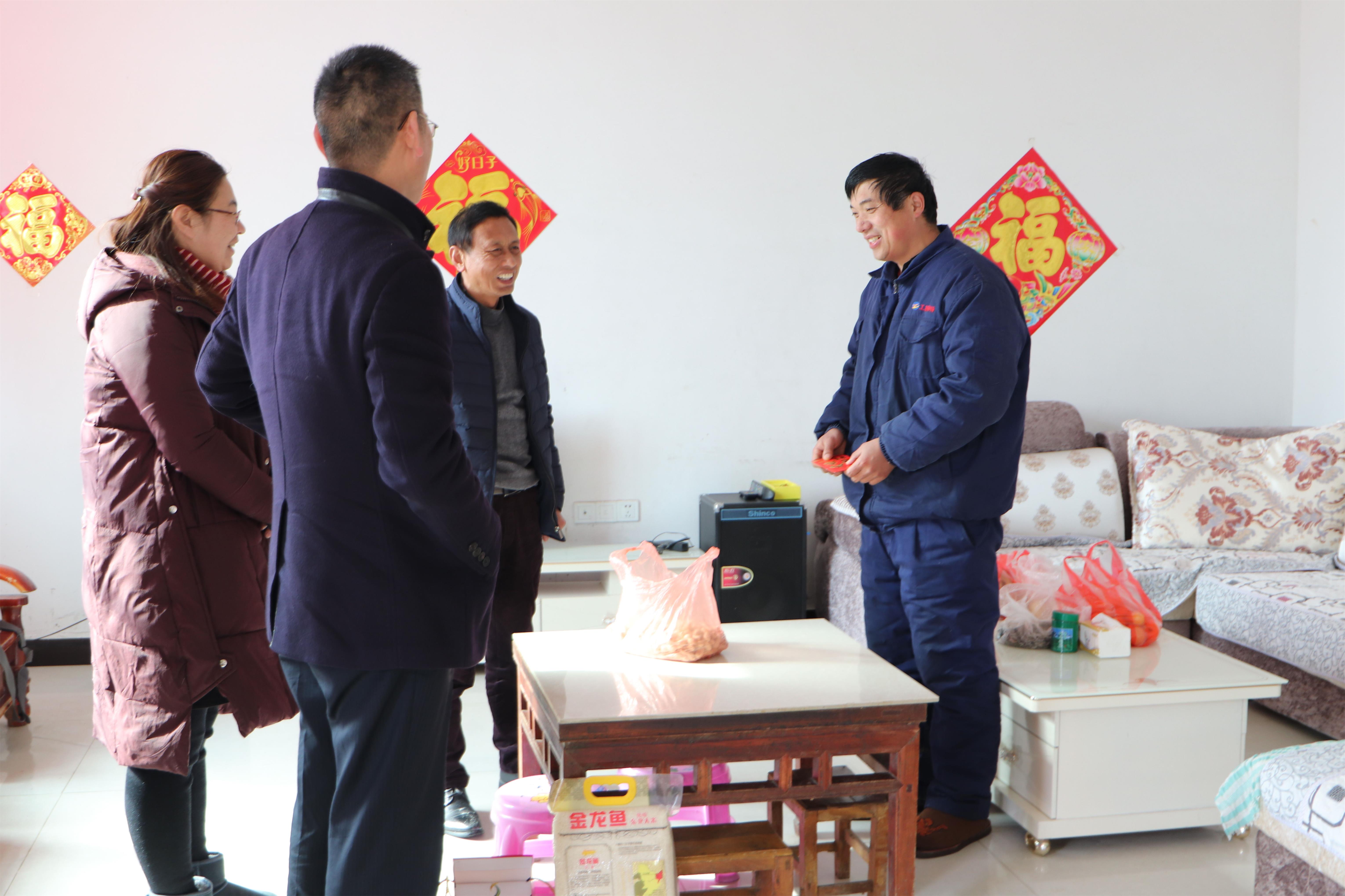 131日下午,公司黨支部書記鄒德兵、副總經理王爽芳、工會主席袁忠一行走進困難職工孫英山等家中,為他們帶去節日的祝福和公司的關懷。
