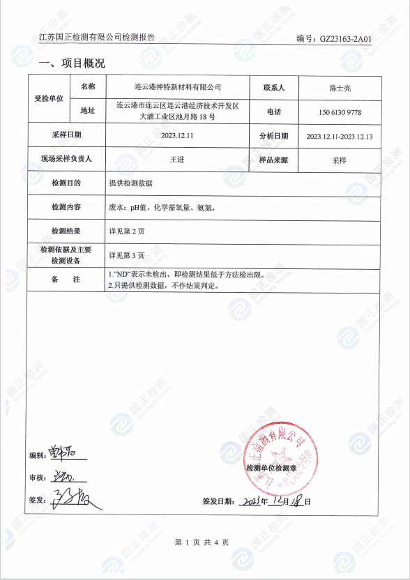 2023年第四季度排污檢測報告
