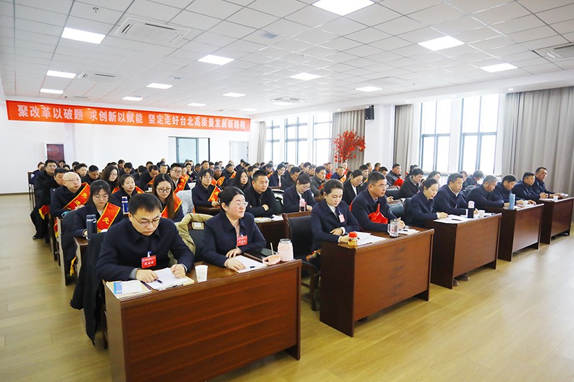 2月19日上午,臺北(華茂)公司二屆六次職代會暨2024年度表彰大會在環(huán)保裝備產(chǎn)業(yè)園五樓會議室隆重召開,會議總結2024年工作,分析研判形勢,部署2025年工作。來自臺北(華茂)共94位職工代表、5位列席代表參與會議。黨委書記、董事長王德志作“聚改革以破題、求創(chuàng)新以賦能,堅定走好臺北高質量發(fā)展新路程”的講話,總經(jīng)理卞霄作《工作報告》。會議由公司黨委副書記、工會主席傅健主持。
