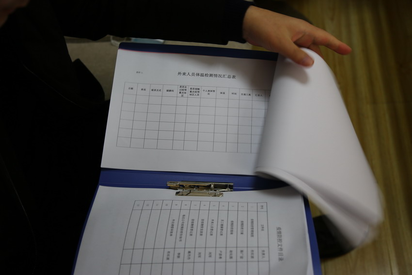在臨達公司,檢查組一行被臨達防疫值班員“攔截”,進行了體溫檢測、登記才“放行”,隨后檢查組檢查了臨達公司值班值守情況,對防疫工作的工作預案和臺賬進行抽查,臨達公司防疫工作扎實,做好返連人員、來訪人員的測溫記錄、出入記錄,確保不漏一人,有詳細的疫情工作預案,細化工作流程,制定具有操作性的工作方案。儲存了適量防疫物資。