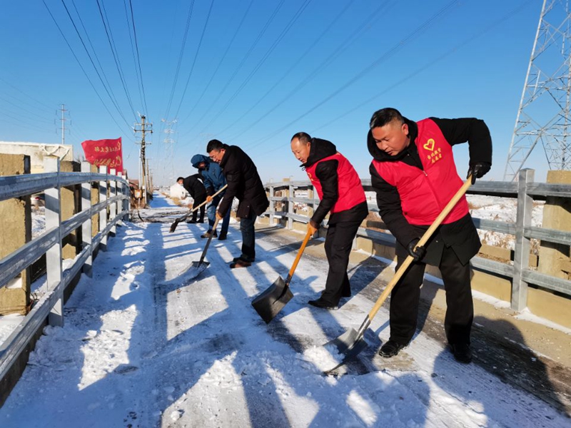 ? 冷冽的寒風中,黨員先鋒隊、青年突擊隊、巾幗突擊隊沖鋒在前,有序地清理道路生產現場、商戶門口等地方的積雪。大家有的揮舞鐵锨,鏟冰除雪;有的手拿掃帚,清掃路面。道路以及進出口的積雪情況得到緩解,及時保證了道路安全暢通傳遞了一份溫暖和正能量,也充分體現了黨員干部的先鋒模范作用。