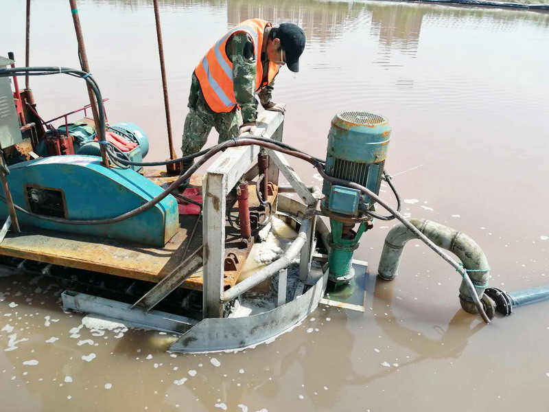 ▲圖為扒鹽機手查看吸鹵泵