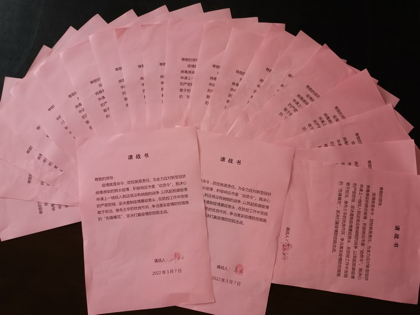 在黨員帶動下,群眾也紛紛行動起來。“還有我們,我們雖然不是黨員,但是我們也想為抗疫貢獻自己一份力量......”優秀職工沈秀成、邱榮濱、韓永剛、占恒春如此說道?!拔覜Q心申請上一線投入到這場沒有硝煙的戰爭,以筑起抵御疫情的嚴密防線,聽從組織的統一指揮與安排,不計得失,無論生死,絕不退縮......”,42名志愿者在請戰書上簽上自己的名字并按下手印,紛紛表示,隨時準備著黨中央的召喚,祖國的召喚,一聲令下,立即奔赴抗戰一線。