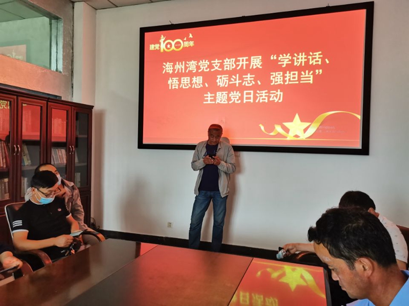 為深入學習貫徹習近平總書記“七一”重要講話精神,進一步堅定理想信念,引導廣大黨員不忘初心、爭創一流,7月27日上午,海州灣黨支部開展“學講話、悟思想、礪斗志、強擔當”主題黨日活動。