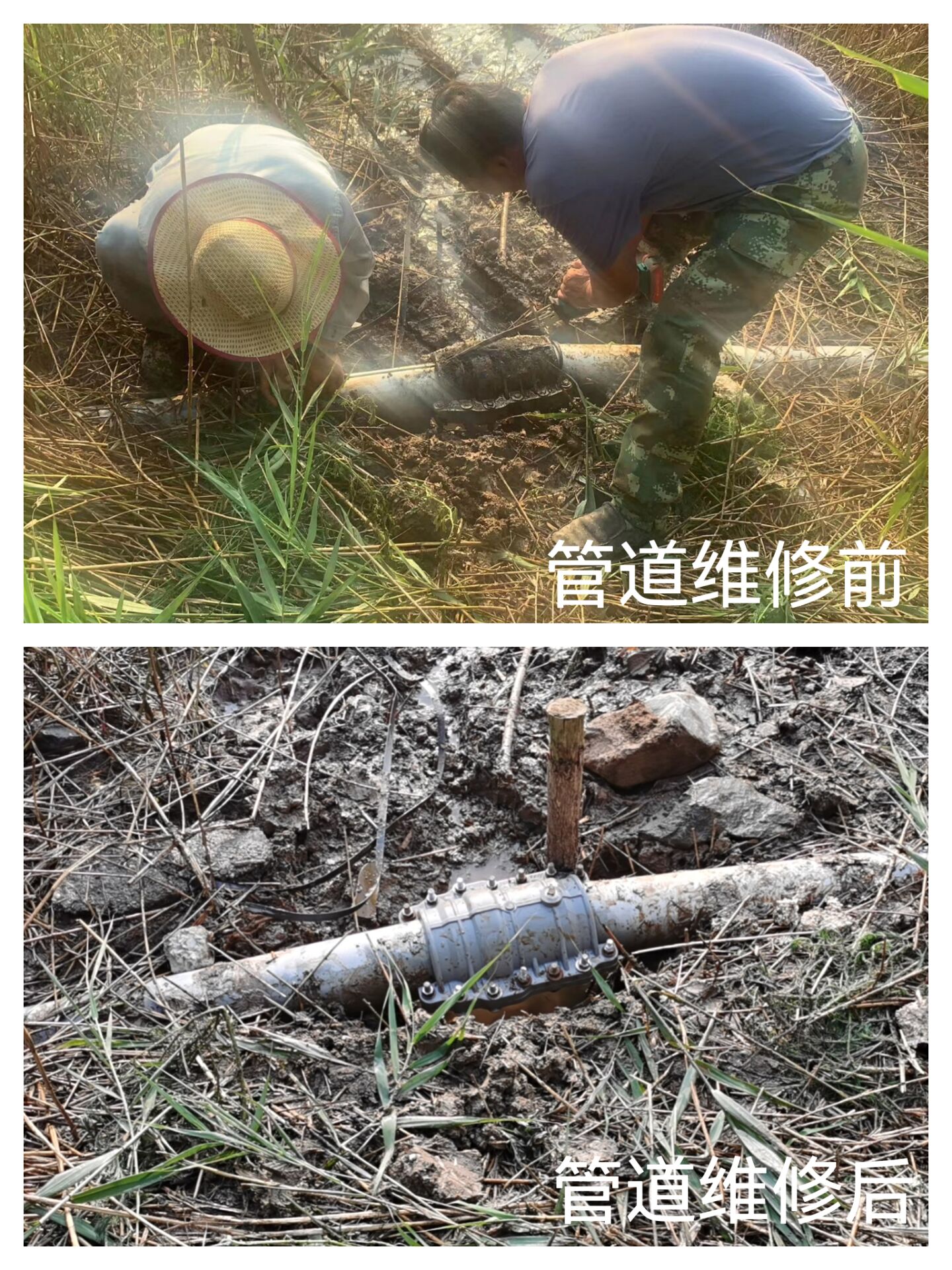 經過現場查看,發現該處管道一直在往外噴射鈣液,管道組王建華、汪永柱兩位師傅立即討論現場維修方案,秉承降本增效的原則,能修不換,決定用哈弗節進行維修固定。