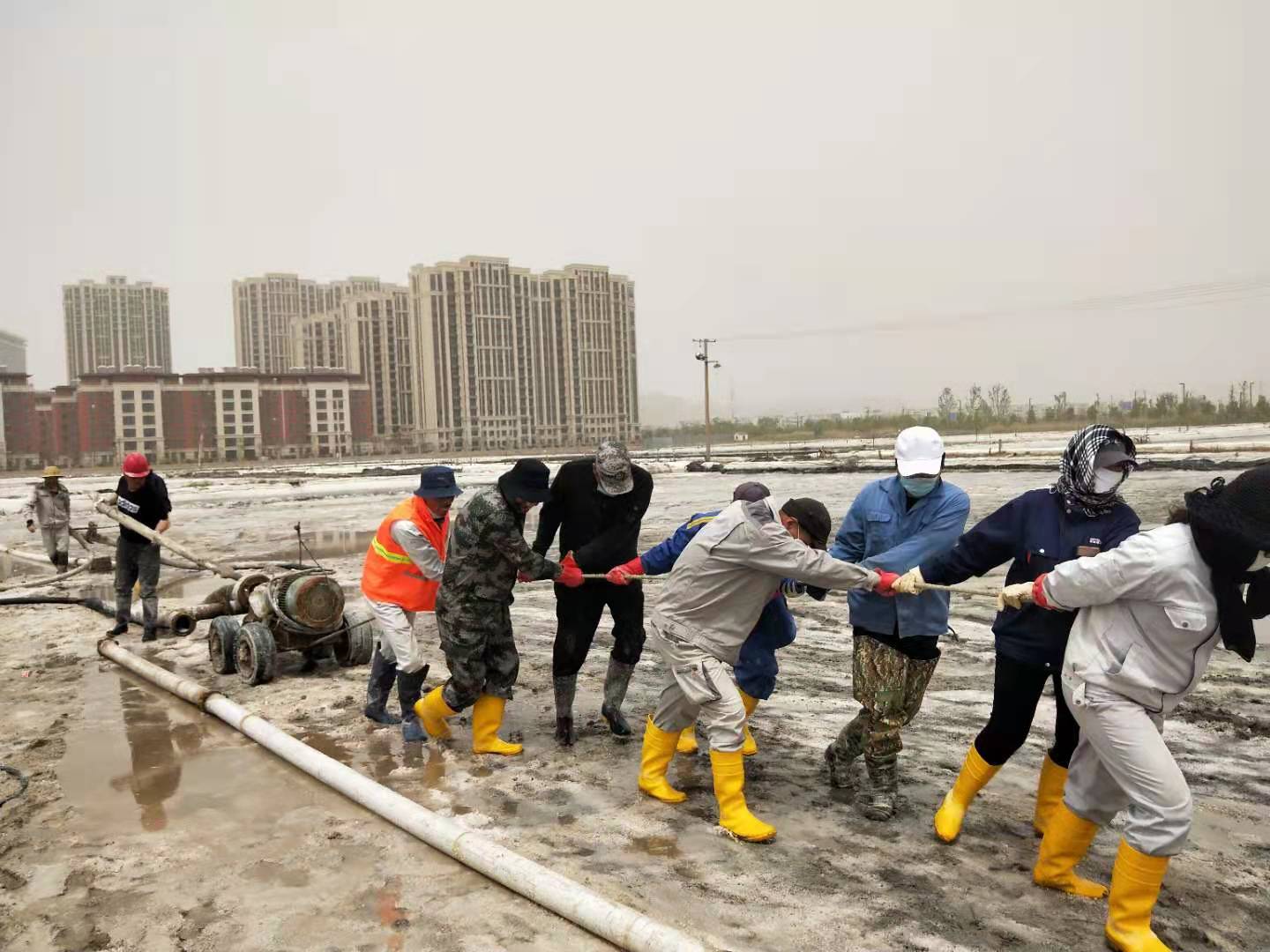 5月8日上午,海州灣公司在扒鹽現(xiàn)場,利用搶修扒鹽機械的間隙,組織當班職工迅速傳達了投資公司“大干紅五月,再創(chuàng)新佳績”動員大會會議精神,積極宣貫投資公司政策和鹽鈣產(chǎn)業(yè)當前面臨的嚴峻形勢,并制定公司大干紅五月小指標勞動競賽方案,開展職工勞動技能大比武,明確公司五月份經(jīng)濟指標,動員全員要團結(jié)奮進,樹立榮辱與共的集體榮譽感,進一步凝聚奮進力量,提升干群士氣,全力沖刺五月份扒鹽10000噸、排鹵60000方、實現(xiàn)營業(yè)收入260萬元的經(jīng)濟目標,掀起大干紅五月的熱潮,營造齊心協(xié)力、大干快干的良好局面。