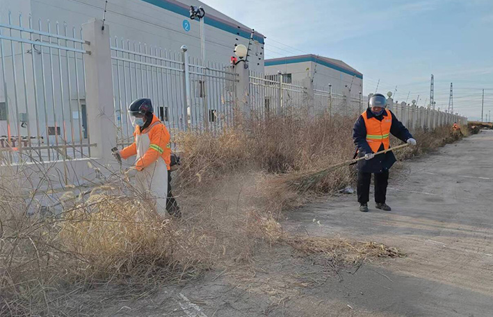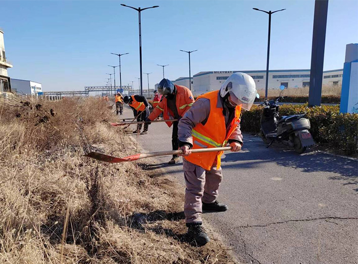 該分公司園區兩個班組近35名保潔勇士,無懼低溫刺骨天氣,匯聚石化十路、石化三道道路兩側。勞動現場,黨員骨干示范帶頭作用處處體現。石峰、朱海勇、楊靜身背幾十斤重打草機,無所怨言,持續工作時長達三個多少時。在他們的帶動下,班組人員一字排開,分工明確,各負其責。