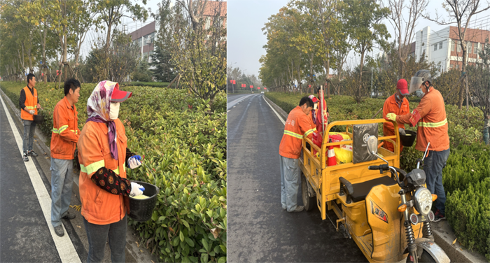 ? ? ? 工作中,班長李洪利、副班長李明春,帶領(lǐng)綠化班組30余人,對云港路、祥和路仁和路,進(jìn)行施肥作業(yè)。“園林衛(wèi)士”手拿施肥工具,2-3人為一小組,采用徒步拋灑方式進(jìn)行作業(yè),縱三路的側(cè)分帶雪松,因長勢不良土壤環(huán)境因素,為重點(diǎn)施肥對象。云港路路線較長,采取分段作業(yè),重點(diǎn)突破。經(jīng)過一天的忙碌,完成既定路段的施肥任務(wù)。